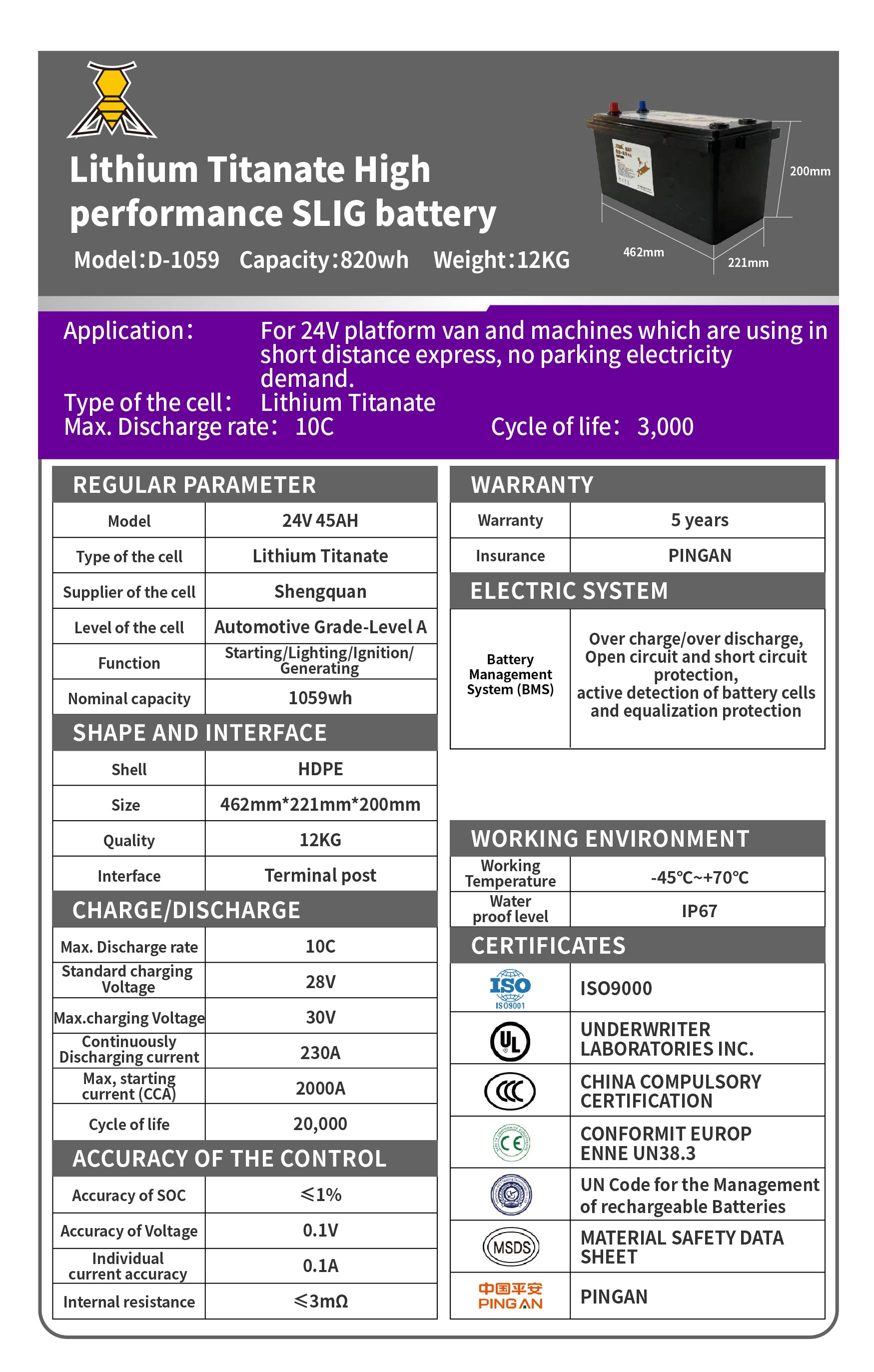 Cell Type: Lithium Titanate   Discharge Rate: 10C   Cycle Life: ≥20,000 cycles