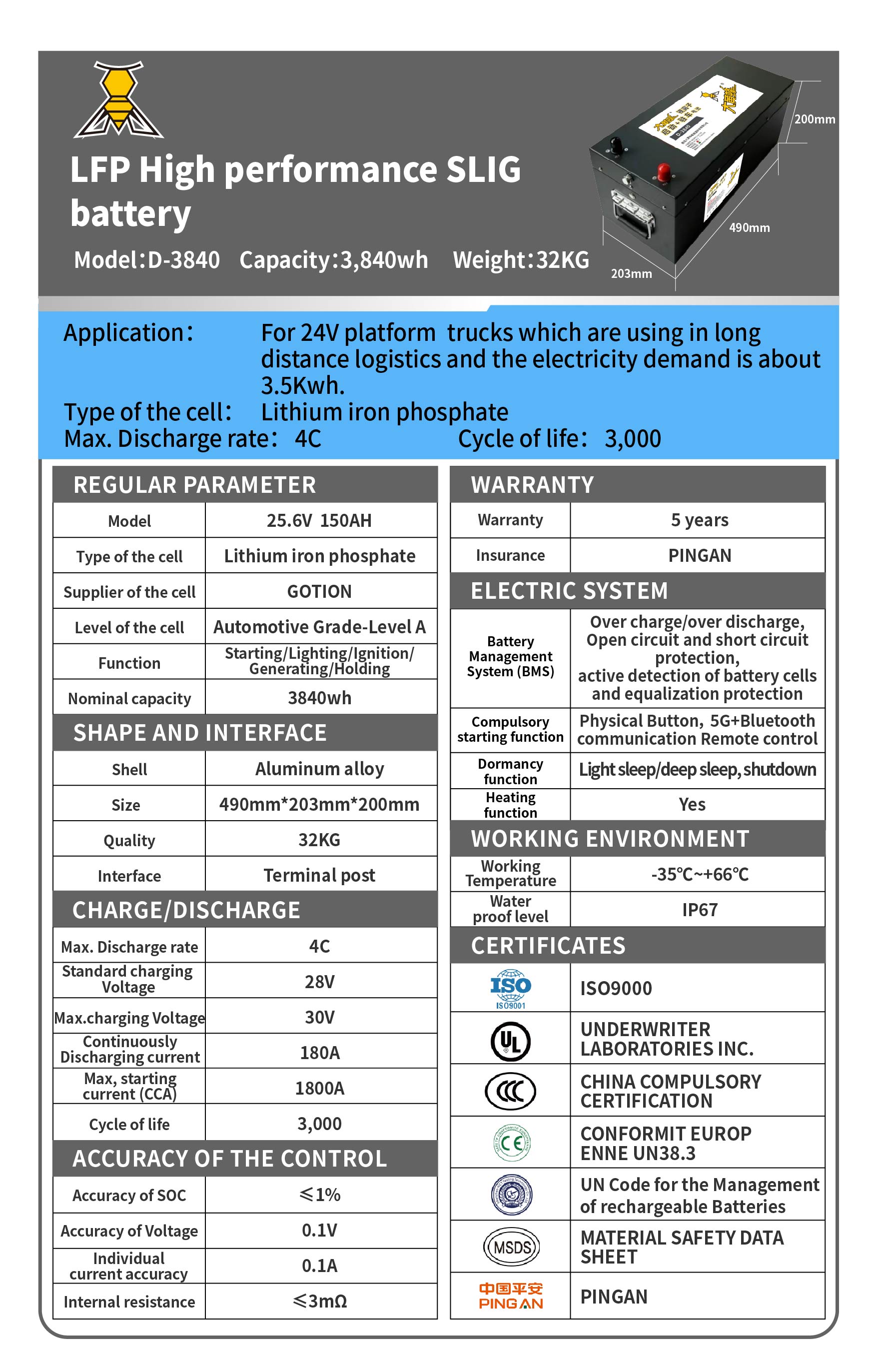 Cell Type: Lithium Iron Phosphate   Discharge Rate: 4C   Cycle Life: ≥3,000 cycles