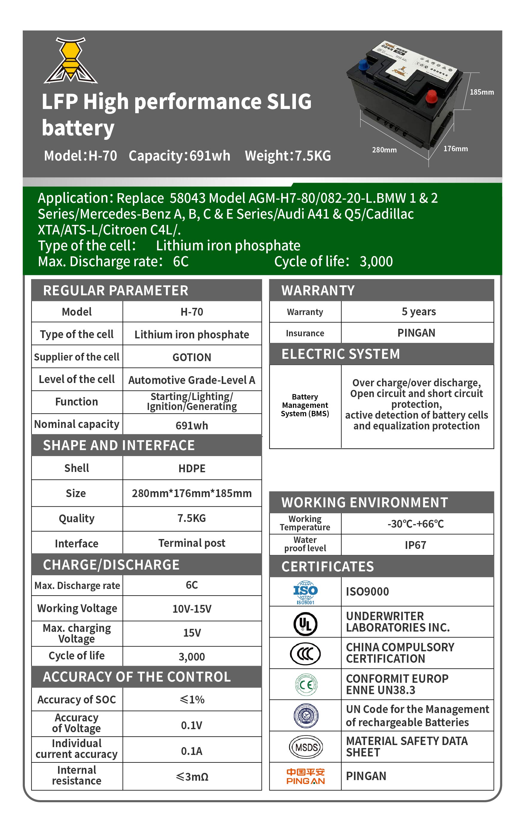 Model: H-70; Capacity: 691wh   Weight: 7.5KG