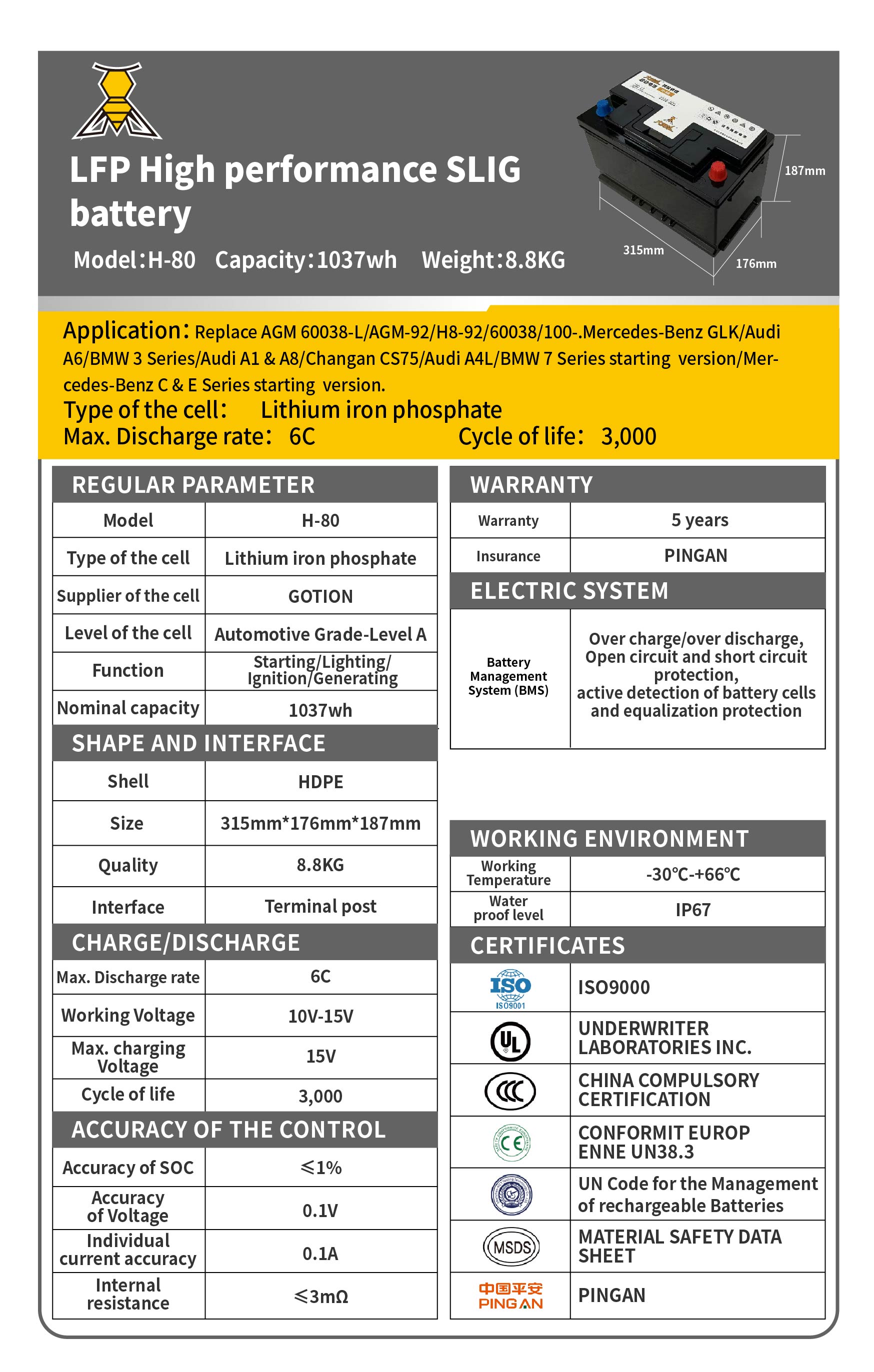 Model: H-80; Capacity: 1037wh   Weight: 8.8KG